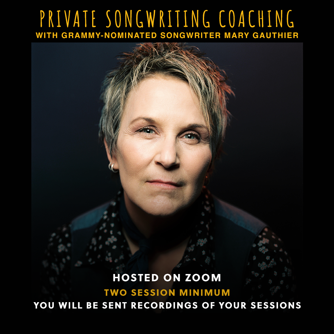 Mary Gauthier is a Grammy-nominated, US and UK Americana Award winning songwriter, published author, teacher, and public speaker. She has enjoyed a twenty-five-year global touring career and continues to perform 100+ shows a year. She teaches songwriting workshops around the world and is available for private song coaching. Her one-hour sessions book up quickly due to limited availability.